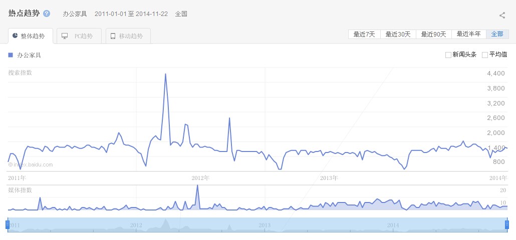 圖為,辦公家具近幾年的市場需求。